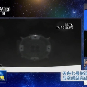 央视网消息(新闻联播):1月17日22时27分,搭载天舟七号货运飞船的长征七号遥八运载火箭在我国文昌航天发射场成功点火发射。飞船首次采用3小时快速交会对接的方式,与空间站形成组合体。今年我国载人航天工程首次发射任务取得圆满成功。