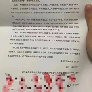 举报学生:黄某若会跟一些公司合作,合作的同时把部分同学的毕业课题弄好。在合作的过程中,学生会下(养殖)场,因为我们动物实验有一些生产性能的相关数据,有部分同学会进行记录,记录中可能有一些“不显著”的数据,但在黄某若那里就必须改成“显著”的结果。