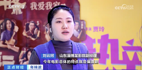 山东淄博某影院副经理 刘云珂:今年电影总体的特点是偏喜剧,以温馨、爱情、家庭为主,非常适合全家人一起来观看。