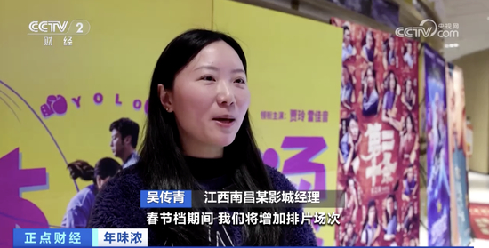 江西南昌某影城经理 吴传青:春节档期间,我们将增加排片场次,从早上8时至凌晨3时都有排片,11个影厅全部开放,同时也会延长营业时间,今年春节档我们还是非常期待的。