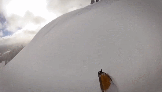 再给大家看一个触发雪崩的视频。这个滑手非常幸运,如果他稍微再往下一点,就会被卷入雪崩了: