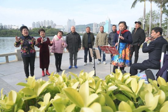 2024年1月24日,市民在位于厦门筼筜湖边的南湖公园开展娱乐活动。新华社记者 林善传 摄