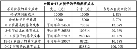 表3:全国0岁至大学本科毕业的平均养育成本