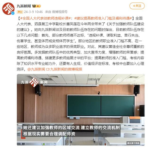 对此,其建议营造全社会尊师重教的良好氛围。多发掘教师队伍中的优秀典型,加大宣传力度,增强教师的荣誉感。再者,提高教师的福利待遇,搭建更多教师施展才华的平台,增强教师的职业幸福感、获得感。
