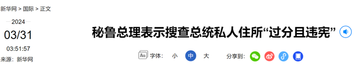 秘鲁总理表示搜查总统私人住所“过分且违宪”