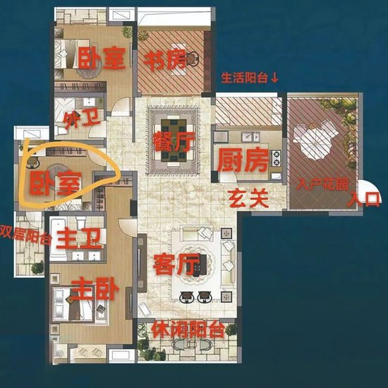 小区附近一家房屋中介的小王(化姓)给了记者一份临峰香阁的东端户型图,他说和出事的西端户型一样,出事的两个房间应该就是面朝西北的卧室。