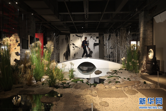 大理石方志馆展厅局部,布置为秀美的中式园林景观(摄于4月3日)。(新华网 赵普凡 摄)
