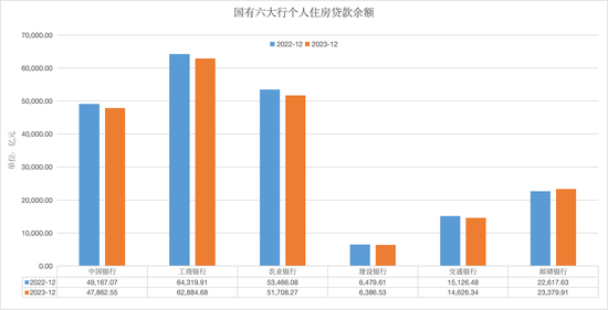 其中,在六大国有银行中,工、农、中、建、交五大行的个人住房贷款余额均同比减少,只有邮储银行一家增长。