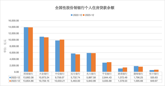 在全国性股份制银行中,5家银行个人房贷余额同比减少,其中民生银行、兴业银行、渤海银行同比减少均超200亿元,招商银行、光大银行降幅较小。