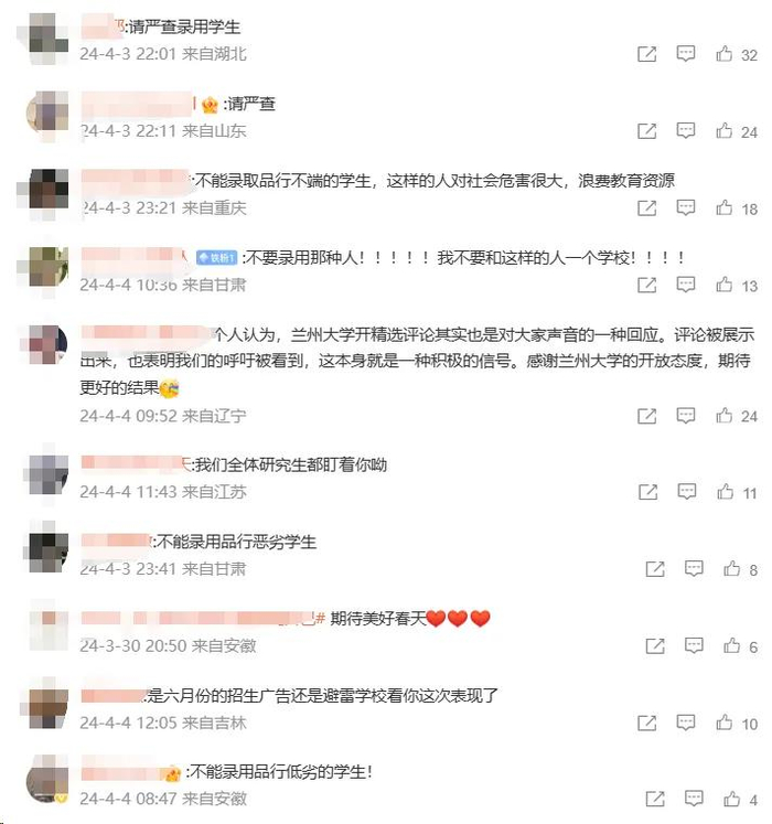 与此同时,众网友涌进兰州大学抖音账号、兰州大学官方微博评论区留言: