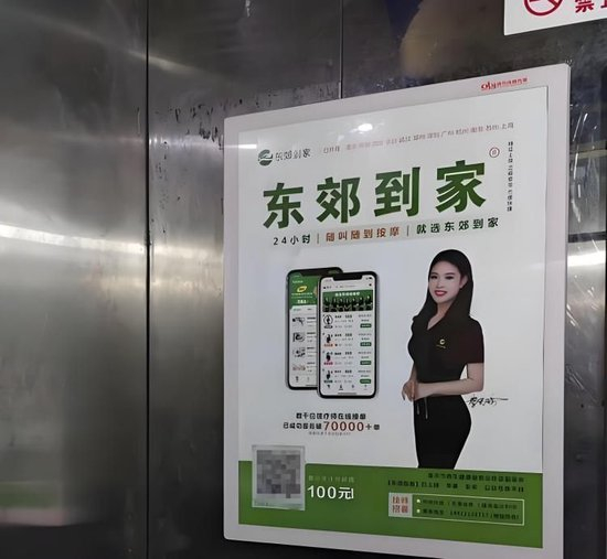 东郊到家在小区电梯、男厕铺天盖地的宣传也引发了不满。一名深圳的家庭妇女认为不适,“按摩推销广告越来越没有底线了,小区电梯有很多小孩也会看到。”