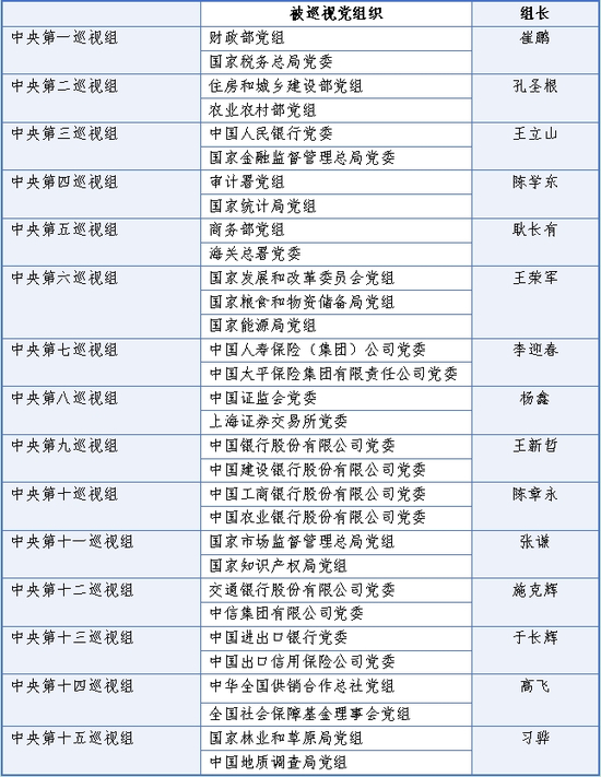 目前,中央巡视组陆续进驻被巡视单位,15位中央巡视组组长全部亮相。