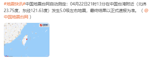 刚刚!又震了!今天台湾连发21次地震:
