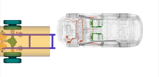 - 事故车辆与前方道路养护车发生115km/h高速追尾碰撞时,前方车辆尾部突出梁状坚硬结构瞬时严重侵入事故车辆左上侧前机舱及乘员舱,导致前机舱及乘员舱严重损坏,线束瞬间被切断,前机舱被高温部件或线束短路火花引燃,前机舱左侧先起火,后火势蔓延至整车,动力电池包未发生自燃。