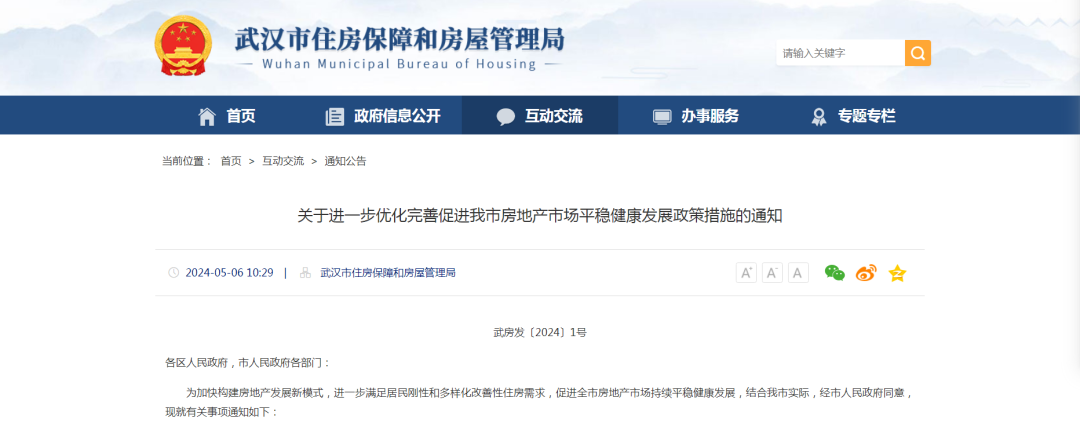 5月6日,武汉市住房保障和房屋管理局官网发布《关于进一步优化完善促进我市房地产市场平稳健康发展政策措施的通知》。《通知》提出,优化住房公积金个人住房贷款套数认定标准,实行“认房不认首次贷”。阶段性调整异地贷款使用条件,取消住房公积金贷款户籍地和缴存地限制。