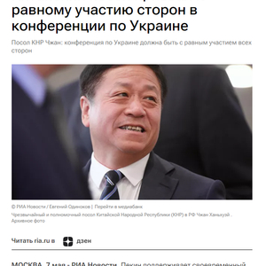 2024年5月7日,张汉晖大使就中俄高层交往、经贸合作、乌克兰危机、中俄文化年等问题接受“今日俄罗斯”通讯社书面采访。采访全文如下: