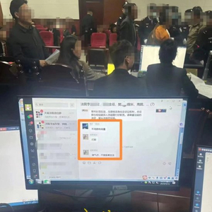 另据一张疑似庭审现场的照片显示,审判长的电脑屏幕中有一个包含“樊某某院长”的7人聊天群,其中名为“樊某某院长”的人称“不用跟他商量”,名为“哈斯庭长”的人则说“打断”、“硬气点,不要随意发言”。此外,该微信中还存在“天峻法院微信群”等其他多个聊天群。而据天峻县人民法院官网,上述聊天群中所提樊姓院长,与该院党组书记、院长同名;此外,海西州中级人民法院对外发布的文章中,也曾提到“刑事审判庭庭长哈斯某某”。