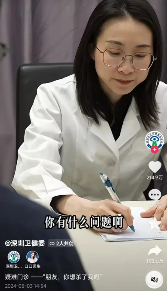 深圳卫健委视频号能否引领官方号一波心理剧风潮还未可知,但有网友评论:“换了条赛道,深圳卫健委依然强得可怕。”