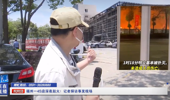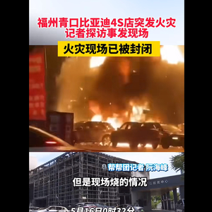 另外,据荆州日报冷暖视频报道,5月16日,福建福州闽侯县内比亚迪青口4S店发生火灾,火势迅猛,火光冲天并伴有巨响。事发后,当地消防迅速赶到现场展开救援工作。对此,闽侯县消防救援大队工作人员称,没有人员受伤,起火原因还在调查中。尚干镇政府工作人员称,火灾确实发生在比亚迪店内,没有人员伤亡,火已经被扑灭了。