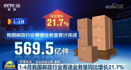 1—4月我国邮政行业寄递业务量同比增长21.7%