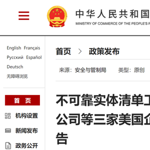 不可靠实体清单工作机制关于对通用原子航空系统公司等三家美国企业采取不可靠实体清单措施的公告