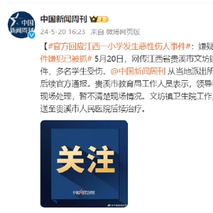 官方回应江西一小学发生恶性伤人事件:嫌疑人已被抓获(中国新闻周刊)
