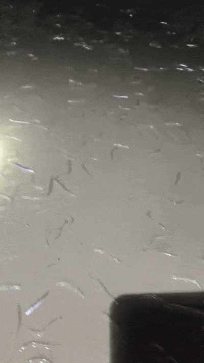 万平口附近曾出现大量面条鱼。一见到如此多活蹦乱跳的面条鱼,日照人的“赶海细胞”便立刻激活了。