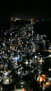 赶海人深夜打着手电、提着网兜、拎着小桶,这是属于日照的海之浪漫。这壮观的场面令外地网友直呼:“不建议大家吃这种捡来的海产品,因为我离得远,捡不到眼红。”