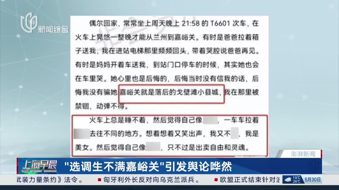 近期,“选调生不满嘉峪关”一事引发舆论哗然。
