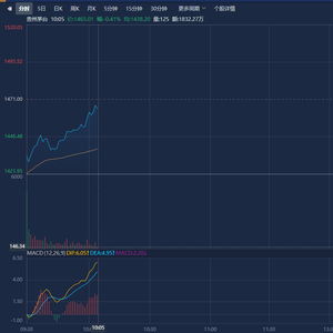 贵州茅台今日低开3.26%,最低价报1414.01元/股,盘中一度拉至平盘,现跌幅收窄至1%以内。