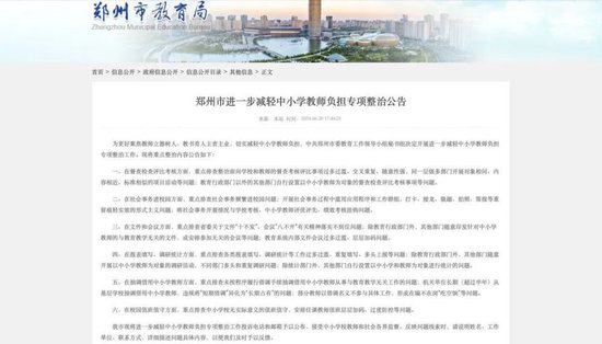 6月末,郑州市启动减轻中小学教师负担专项整治行动,明确“减负清单”。其中提到,重点排查中小学校无实际意义的值班值守,安排任课教师值班层层加码、过度防控等问题。