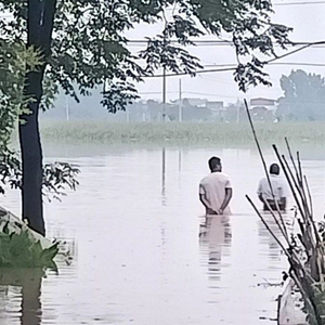 郑女士所在的村子大部分是自建楼房,小部分是平房。据郑女士讲述,目前,已经有大半个村子在水里泡着。“村子四面原本都是田地,现在玉米以及蔬菜类的农作物都在水里泡着,损失严重。”