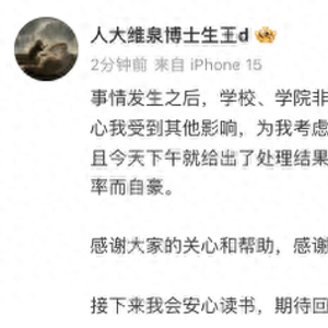 其表示 ,“接下来我会安心读书,期待回到安宁的世界,再次感谢大家。”