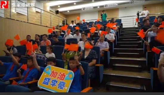 盛李豪的同学和老师在张家港观看比赛。图片来源/张家港融媒