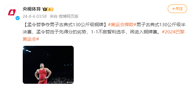 [孟令哲争夺男子古典式130公斤级铜牌]男子古典式130公斤级半决赛,孟令哲由于先得分的劣势,1-1不敌智利选手,将进入铜牌赛。