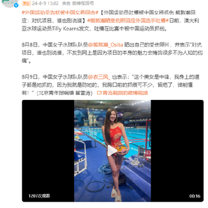 [外国运动员吐槽被中国女将抓伤 熊敦瀚回应:对抗项目,谁也别说谁]日前,澳大利亚水球运动员Tilly Kearns发文,吐槽在比赛中被中国运动员抓伤。