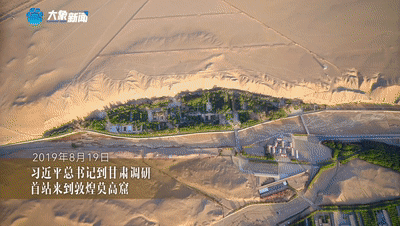 2019年8月19日,习近平总书记到甘肃调研,首站来到敦煌莫高窟。