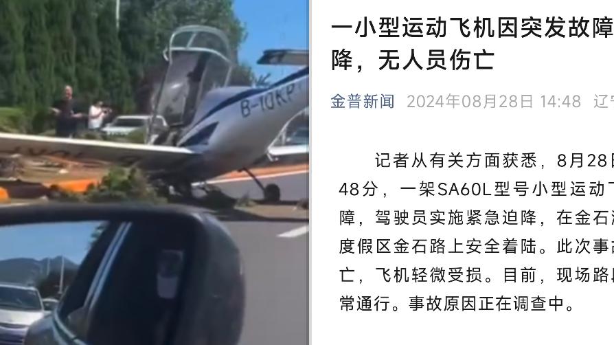 大连通报小型运动飞机紧急迫降公路:无伤亡,飞机轻微受损