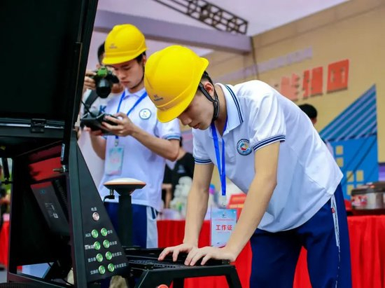 海南省机电工程学校学生在职业教育活动周上展示机电维修技能。
