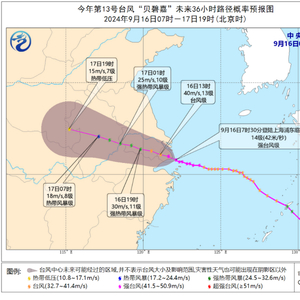 预计,“贝碧嘉”将以每小时25公里左右的速度继续向西偏北方向移动,强度逐渐减弱,将于17日夜间在安徽、河南交界附近减弱为热带低压。中央气象台16日早晨继续发布台风红色预警。