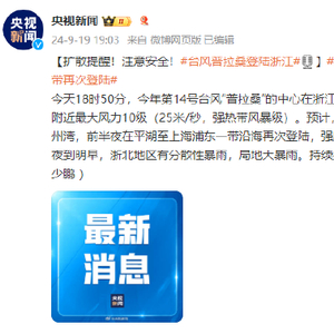 扩散提醒!注意安全!#台风普拉桑登陆浙江##台风普拉桑将在浙江上海一带再次登陆#