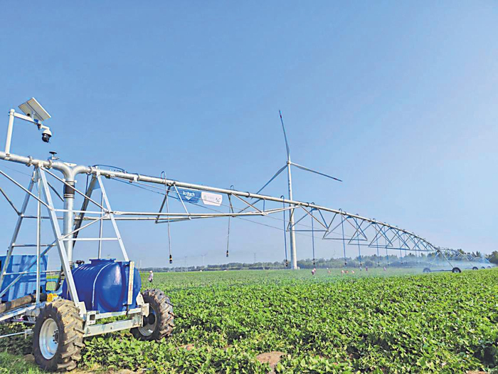在延津县,万亩高标准农田里的夏玉米已进入灌浆期,该阶段浇水增肥是增加产量、保障丰产丰收的关键。在塔铺街道大柳树村的高标准农田里,几十米宽的大型平移式喷灌机似巨鸟展翅,在田间缓缓移动,“羽翼”下的几十个喷头喷出均匀的“水雾墙”,滋润着庄稼,让玉米“吃饱喝足”。中国移动5G水肥一体化智能灌溉技术将灌溉和施肥两个农业生产过程融合在一起,不仅实现了浇地向浇苗转变,还能将水连同肥料直接输送到玉米地里,让玉米“渴”了就“喝”、“饿”了就“吃”,实现了对农田水分和养分的综合管理。