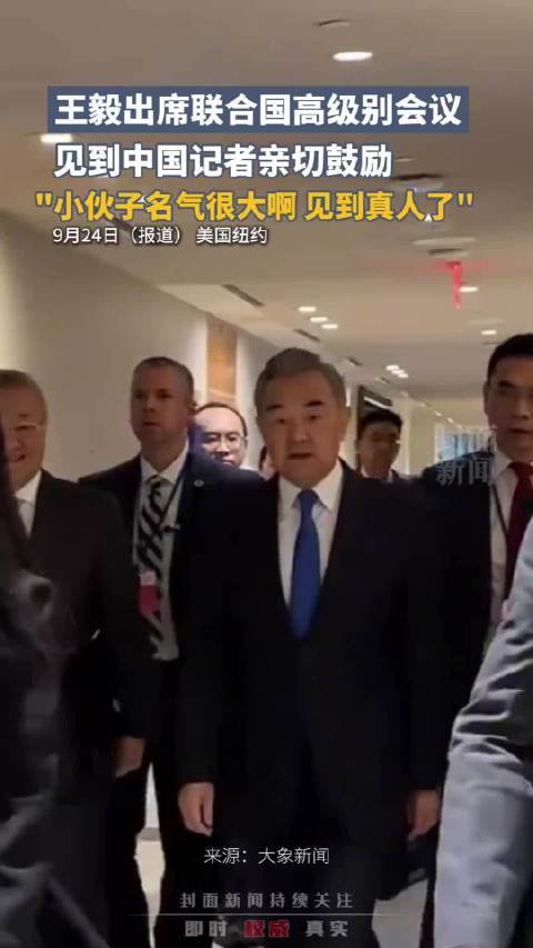 当地时间9月23日,中共中央政治局委员、外交部长王毅在纽约联大行程中,遇到了央视记者徐德智,并亲切打招呼勉励记者:小伙子,名气很大呀。徐德智上前握手,王毅接着说:经常在电视上看到你,见到真人了。