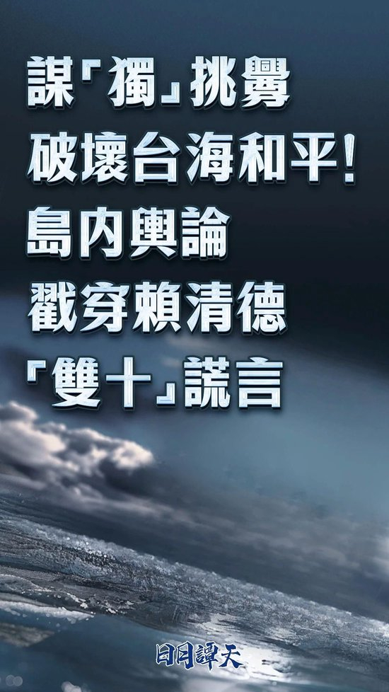 日月谭天丨谋“独”挑衅破坏台海和平!岛内舆论戳穿赖清德“双十”谎言