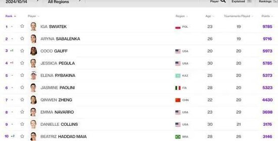 随着在武汉网球公开赛收获亚军后,14日WTA官方网站公布了最新的世界排名中,郑钦文以4430积分稳居第7,紧随其后的美国选手纳瓦罗成为郑钦文冲击年终总决赛最大竞争对手。