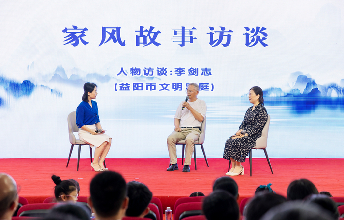 湖南省沅江市纪委监委通过家训传廉、家风倡廉、家庭助廉等方式,创新形式、拓展内容、丰富载体,培育廉洁家风、涵养清风正气,推动形成家风文化建设的强大合力。图为在湖湘好家风故事分享会(益阳专场)活动现场,文明家庭代表分享自己的家风故事。(湖南省沅江市纪委监委 盛拥军 摄)