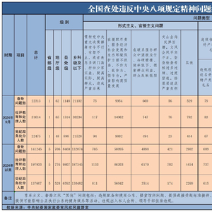 10月28日,中央纪委国家监委公布了2024年9月全国查处违反中央八项规定精神问题汇总情况。当月,全国共查处违反中央八项规定精神问题22313起,批评教育和处理31614人,其中党纪政务处分22475人,这是连续第133个月公布月报数据。