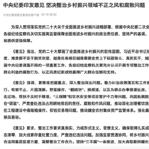 早在2023年2月,中纪委印发《关于开展乡村振兴领域不正之风和腐败问题专项整治的意见》,提出要坚决惩治一切损害群众利益的腐败行为,并指出要加强对村干部特别是“一肩挑”人员的监督管理。