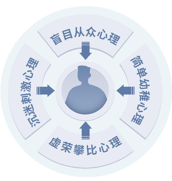 沉迷赌博、以腐养游、对直播打赏上瘾……近年来,年轻干部沾染不良嗜好走向违纪违法之路的案例引起社会广泛关注。不良嗜好背后主要有两种心理作祟:一些人追求快感刺激,希望以小博大短时间内获得巨大收益;还有一些陶醉情绪价值,现实失意继而转向虚拟空间,如购买大量游戏装备、在直播打赏中争当“榜一大哥”或是高额网贷超前享受,以此获得一时满足感和成就感。现实中,这种畸形追求带来的是诸多“动作变形”、行为失范、偏离正道。单位和部门要注重全方位关注年轻干部工作状态和生活趣味,指引年轻干部发展积极有益的兴趣爱好,脚踏实地在现实工作生活中找到自身价值。