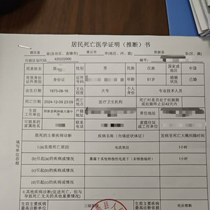 陈勇的死亡医学证明(推断)书。 受访者供图
